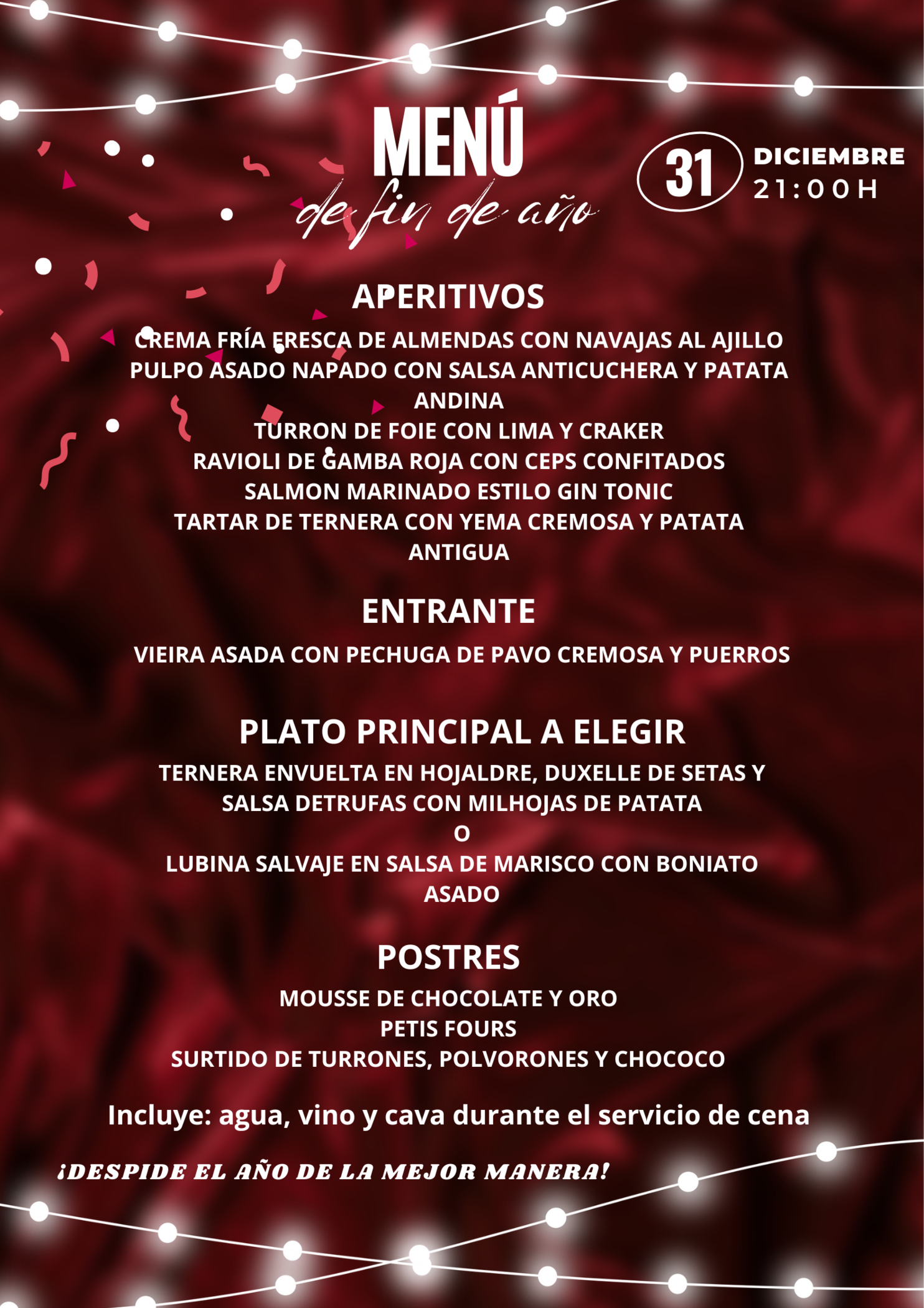 Al sonar las campanadas, brindaremos por el 2026 con las tradicionales uvas de la suerte, y a partir de ahí... ¡empieza la fiesta!